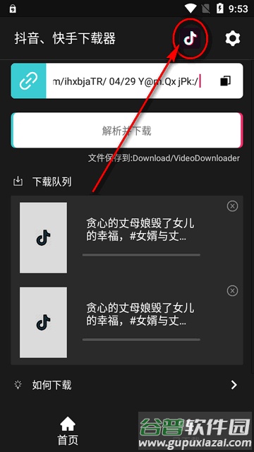 1、打开软件后,点击界面右上角的抖音图标按钮。