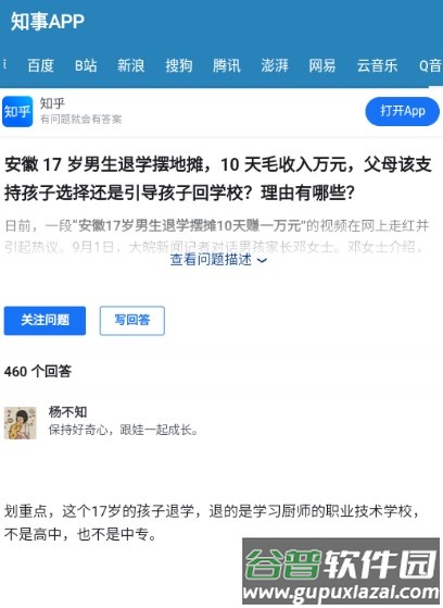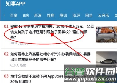 5、例如选择知乎板块,可浏览其热门提问列表;