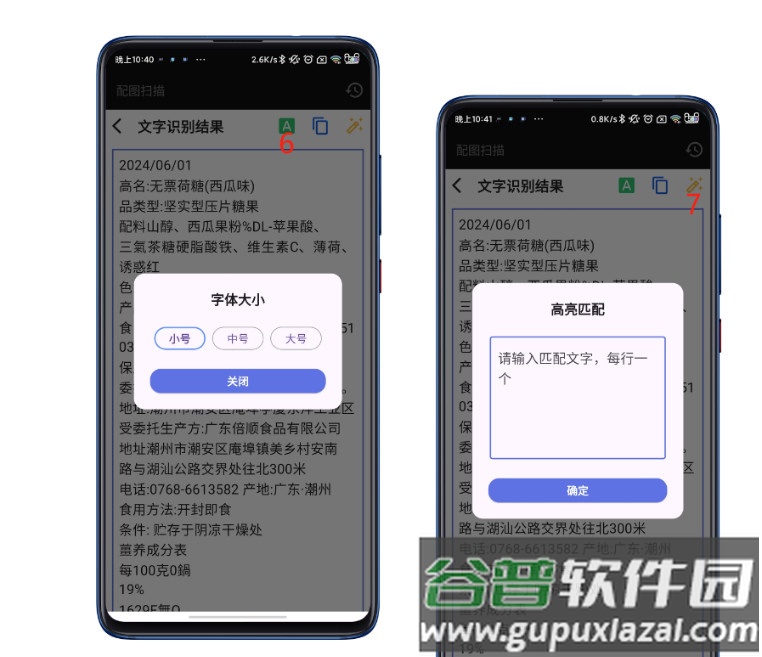 通过6可以调节识别文本的字体大小;点击7可启用高亮匹配功能,便于对照查看。
