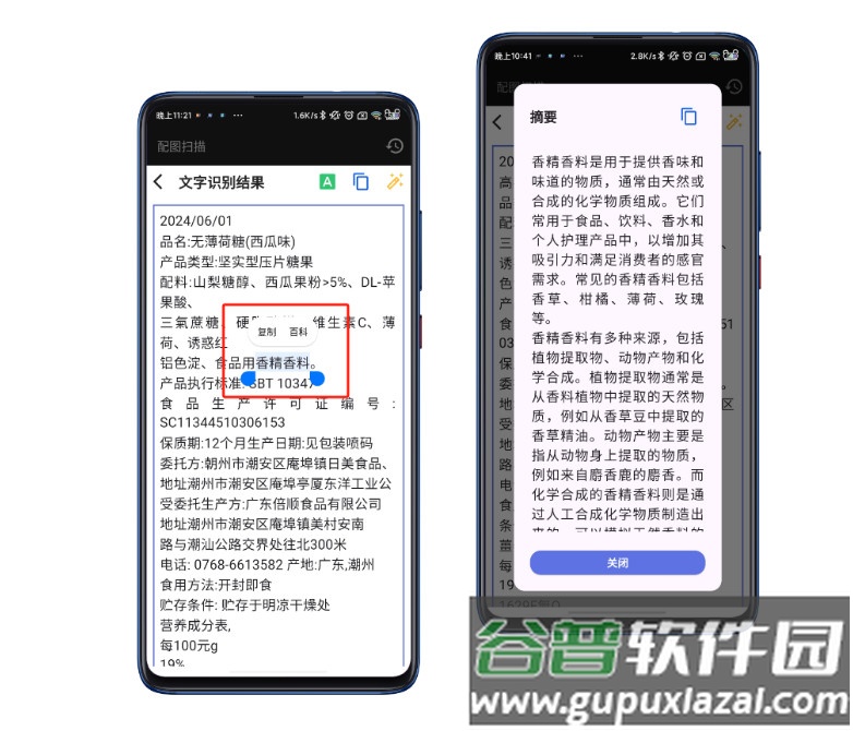 3. 支持对文本内容进行复制及百科查询;