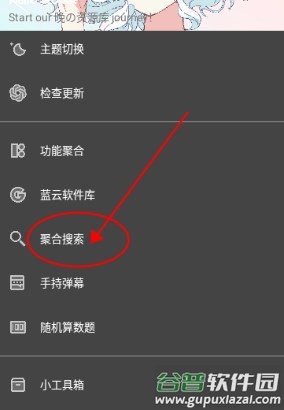 2、在侧边栏中找到并点击“聚合搜索”功能;