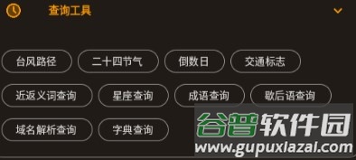 3、查询工具:支持查询台风路径、节气信息、纪念日倒计时、交通标志释义、词语近反义词、星座运势、成语解释、歇后语及域名信息等;