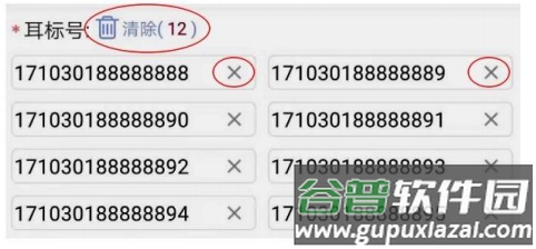 添加成功后,耳标列表将显示已录入的号码;可点击单个耳标后的“X”删除该号码,或使用清除按钮删除本次全部记录。
