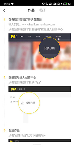 如果你希望将自己的漫画作品发布到快看平台,可以通过以下方式投稿。