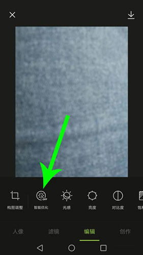 2、进入编辑界面后,点击“智能优化”功能,让图片初步变得清晰。
