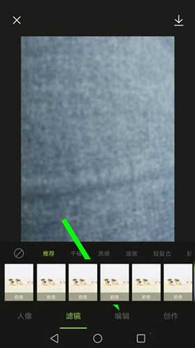 4、滤镜:软件的修图流程十分流畅;导入照片后会自动识别主体并推荐编辑步骤;例如自拍照会优先进入“人像”功能,随后通过“滤镜”改变整体风格,再利用“编辑”工具微调亮度、对比度等参数。