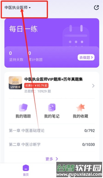 1、启动软件后,点击界面左上角显示的职称类型入口。