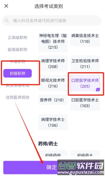 2、页面会展示多个可供选择的考试分类。
