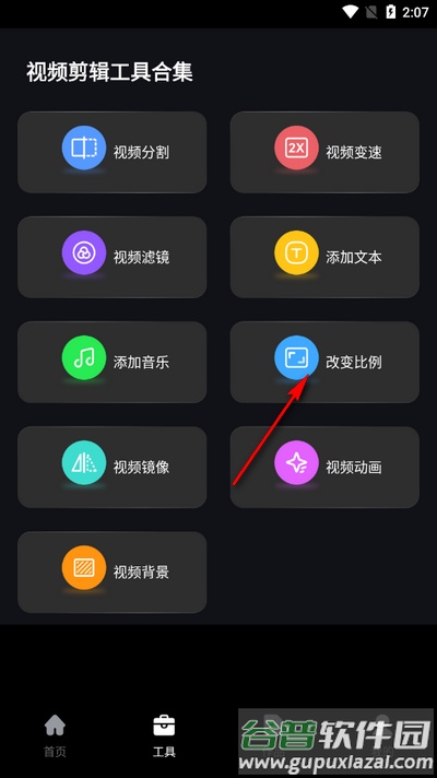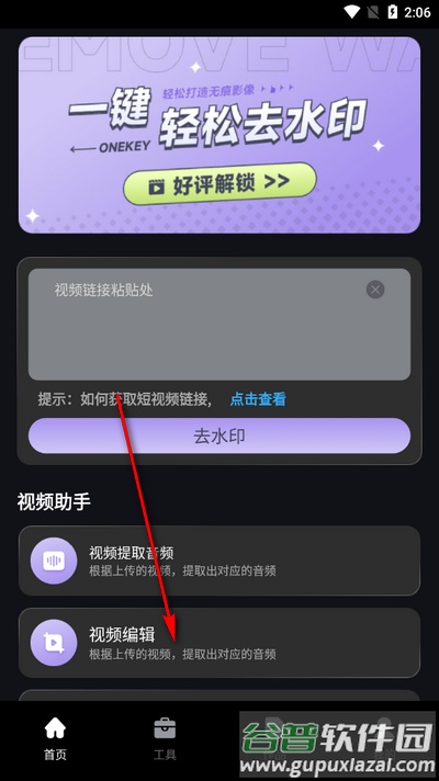 1、打开软件进入主页面,找到并点击视频编辑功能入口。
