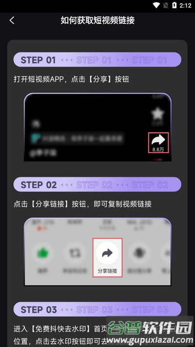 2、获取短视频链接的方法如下:在抖音或快手等平台,找到需要处理的视频,点击分享按钮后选择复制链接选项。