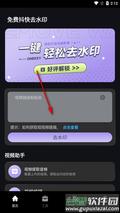 1、启动应用程序,在界面提供的输入框中粘贴已复制的短视频链接,随后点击去水印按钮即可开始处理。