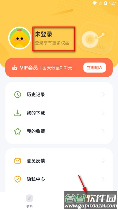 2、点击底部“我的”页面,再点击页面上方的登录入口。