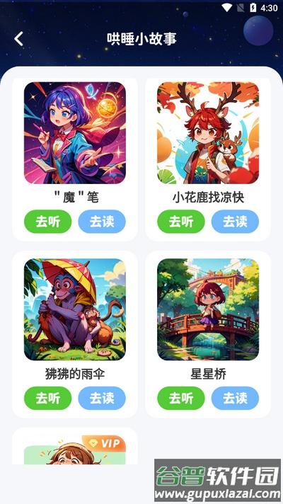 2、在列表中找到喜欢的故事,点击“去听”或“去读”按钮即可开始。