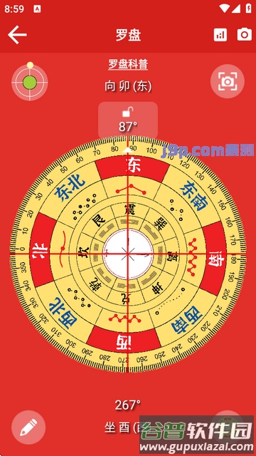 3、点击进入罗盘界面即可查看方位,若有疑问可点击内置的罗盘科普指南;