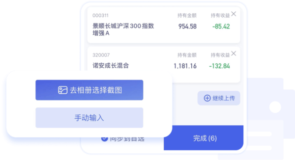 上传正规平台的基金截图,通过识别技术自动录入,简化估值查询步骤。