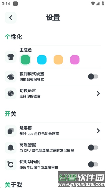 通过桌面悬浮窗或状态栏悬浮窗,能够实时查看CPU温度、电池温度及内存占用率,信息展示直观方便;桌面小部件也支持对内存状态进行监测。软件外观设计精美,提供多款主题颜色可供更换。