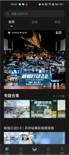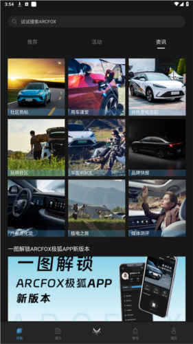 1、安装并打开ARCFOX极狐应用,首页将展示品牌相关的汽车资讯与动态;