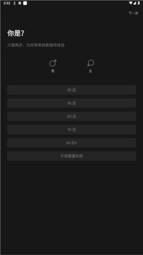 2、选择性别与年龄区间,以便获取更个性化的车辆推荐;