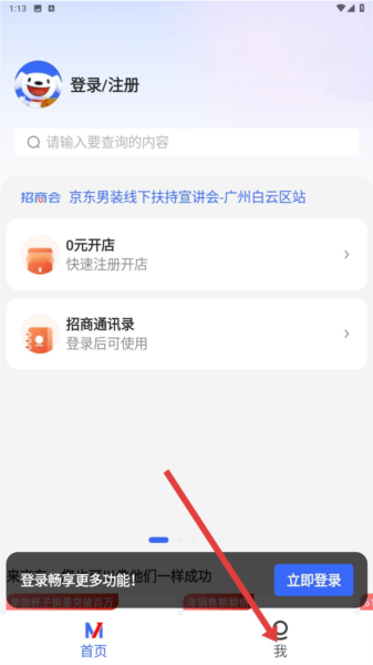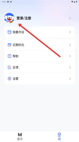3、跳转到“我”界面后,上方显示未登录状态,点击登录即可跳转至登录页面。