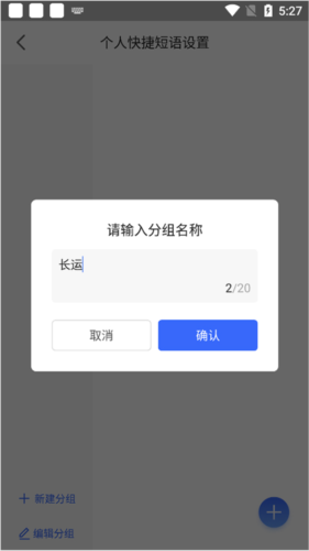 4、在个人快捷短语设置页面,点击左下角的【新建分组】。