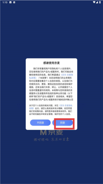 1、打开软件后,会显示服务协议,阅读完毕后点击同意并继续下一步。