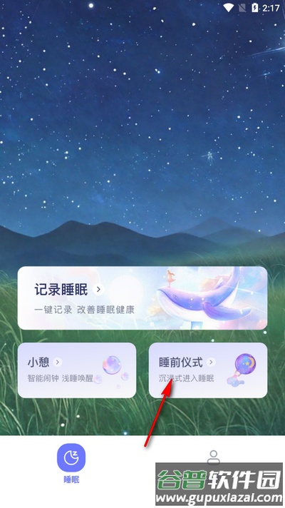 1、打开软件进入主界面,点击睡前仪式选项;