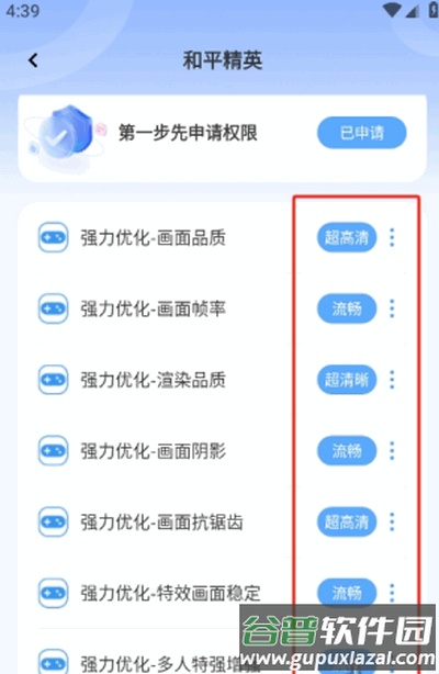 打开应用后,首先选择你想要启用的画质优化功能。