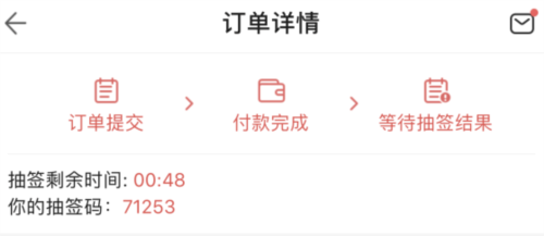 2、在订单详情页可查看个人抽签号码,抽签结束后刷新页面即可得知结果;