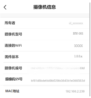 选择“摄像机信息”可查看产品的序列号等相关信息。