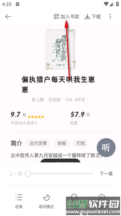 2、点击页面上的加入书架按钮,书籍便会保存到个人书架中。