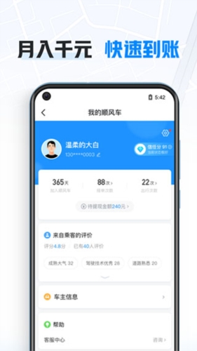 3、支付提现便捷:支持微信支付等多种方式,车费结算简单,提现流程快速,资金到账及时。