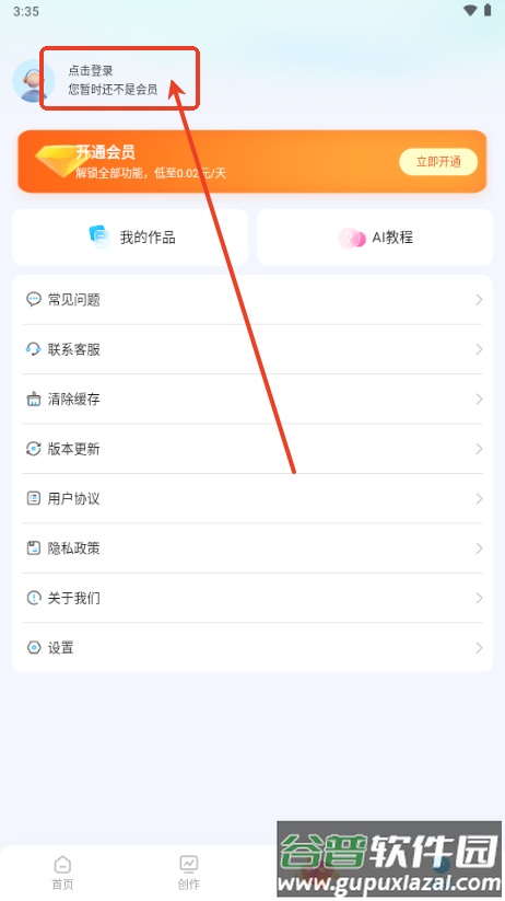 3、在个人中心页面找到并点击登录选项;