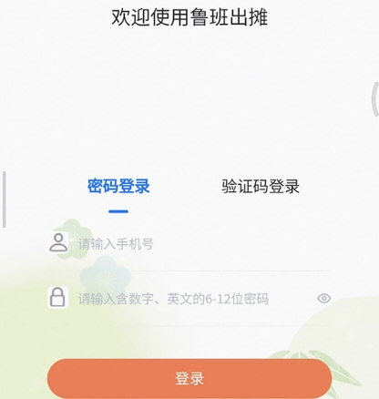 1、下载鲁班出摊app至手机,使用手机号登录即可开始接单;