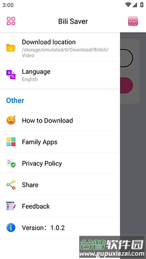 1、启动哔哩下载器应用后,点击界面左上角的方块形菜单图标;