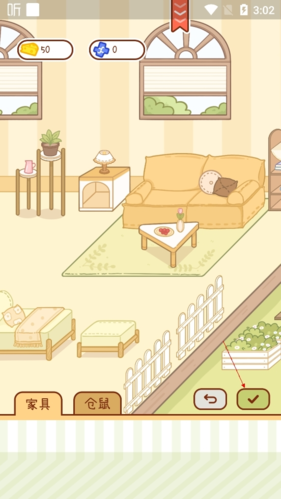 3. 商城中可使用奶酪购买常规食物与家具物品,购买家具能装饰专属小屋,解锁更多场景风格。