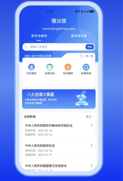 懂法猫由深圳市懂法猫网络科技有限公司研发,是一款高效的法律数据检索应用。用户能够便捷地搜索各类司法案例,辅助法律知识学习。该软件融合人工智能技术,提供智能化的法律服务,集成了海量法规、案例与专业数据,便于使用者进行法律研究与学习。