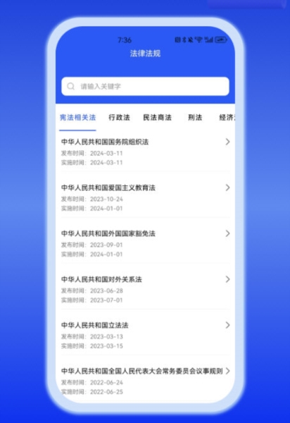 4、法律法规大全:支持本地法律法规的快速查询。