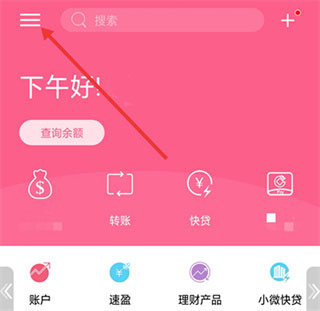 1、安装并打开陕西信合app,点击页面左上角菜单或登录入口;