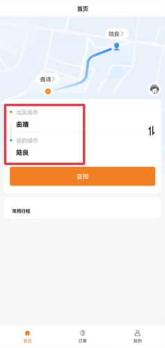 1、打开应用,在首页输入出发城市与目的城市。