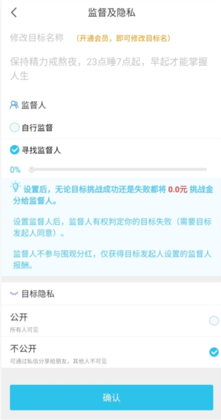 4、监督功能:设定目标后可邀请监督人,获得即时反馈,提升任务完成率;