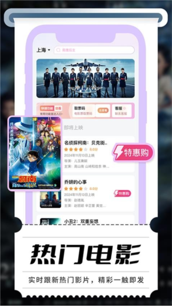 热门影片提前预售,支持优先选座;助你提前锁定理想座位;