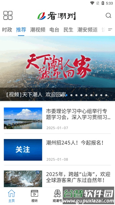 2、潮视听板块汇集了本地新闻联播等节目,用户可以根据兴趣选择观看;