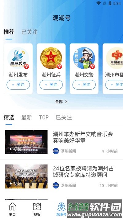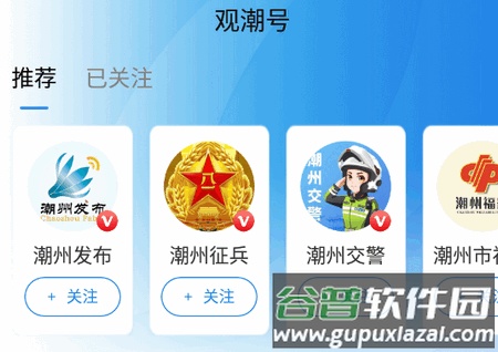 4、观潮号页面集合了潮州相关的各类公众号,方便用户一键关注获取更多信息。