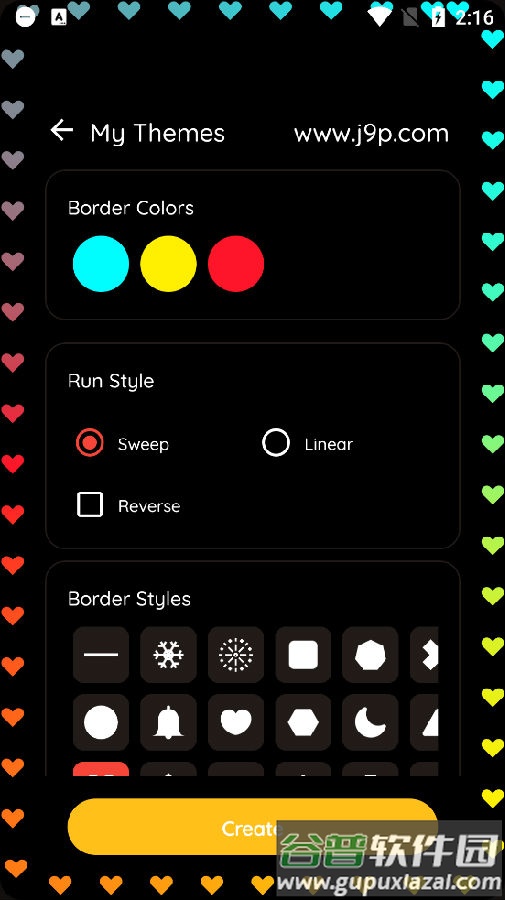 支持在多种屏幕形态上编辑灯光效果,包括Infinity U、Infinity V、刘海屏与挖孔屏等;可以自由调整边缘灯光的颜色与宽度;提供心形、圆点等自定义特效。