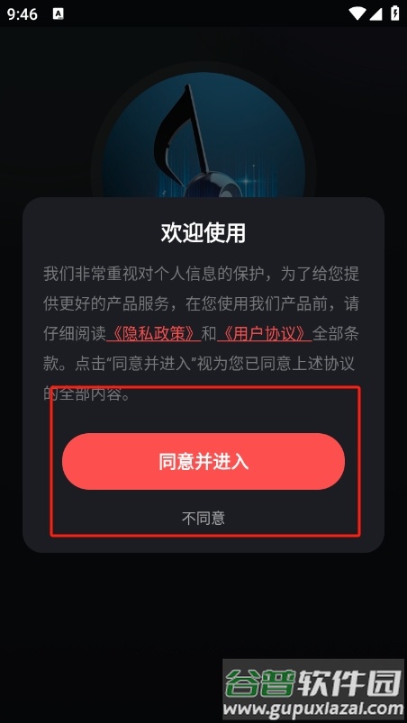 2、打开软件后仔细阅读用户协议内容并确认同意。