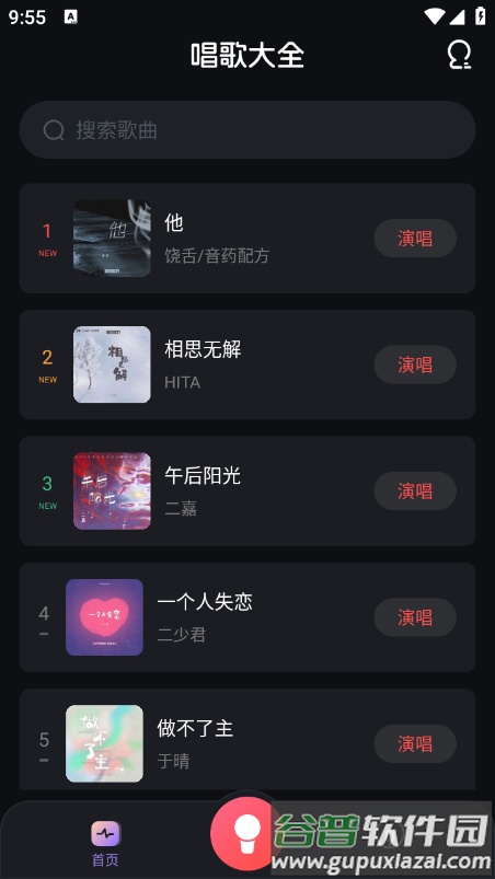 3、进入应用首页即可浏览到数量庞大的K歌曲目。