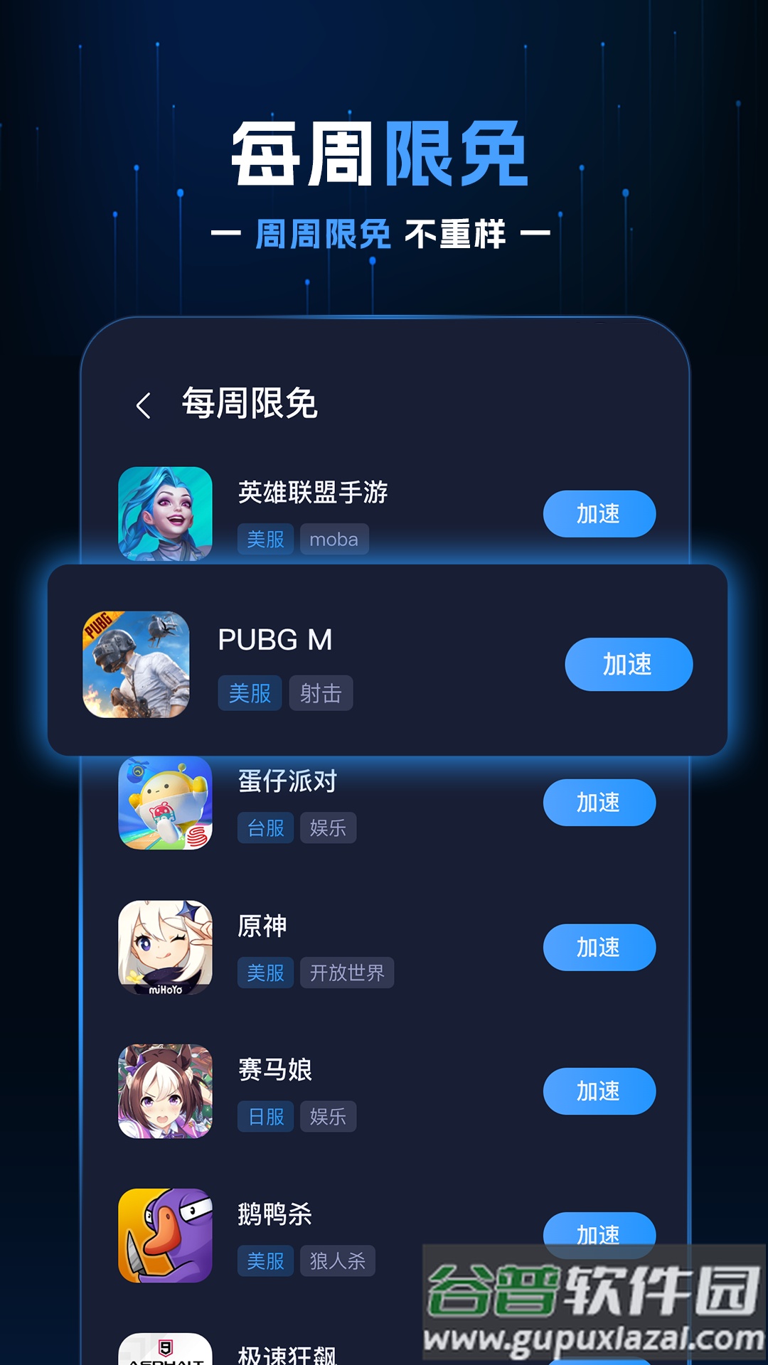 可加速传奇M、绝地求生:刺激战场、未来之役、火炬之光:无限、十三月、宝可梦大集结、战地手游、剑灵2、英雄联盟手游、云顶之弈手游等多款热门游戏;