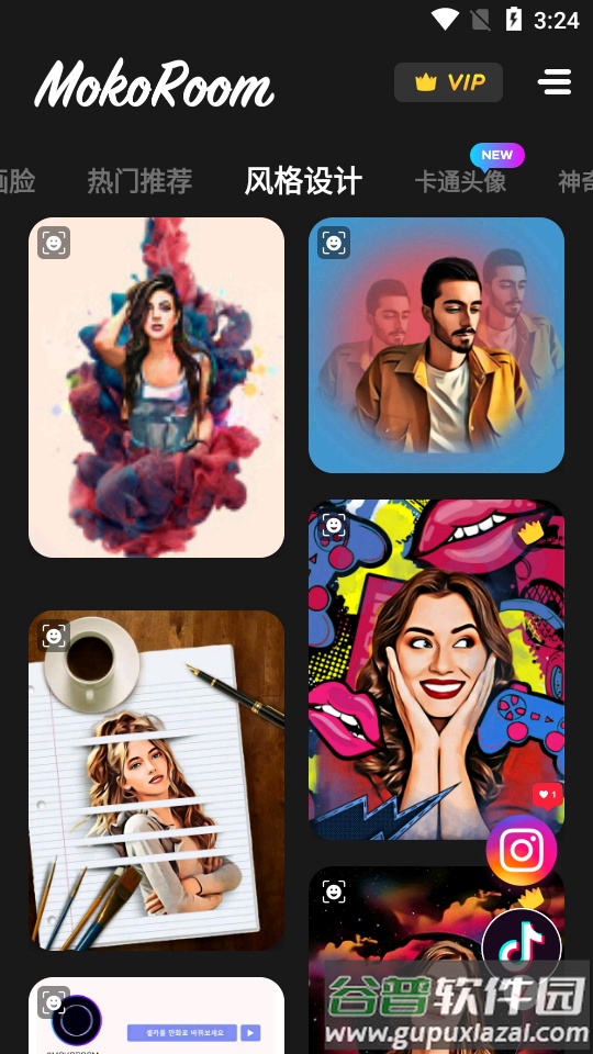 这款软件提供了极其丰富的炫酷贴纸与精美滤镜,用户可以自由选择并随意搭配。在应用内能够畅玩各类特效,轻松将普通照片转化为艺术画作。Mokoroom的修改版本现已改名为Facee,会员VIP功能可免费使用,支持无水印保存创作成果。其功能强大,能一键生成动漫形象效果,还包含多种趣味玩法,等待你的参与。
