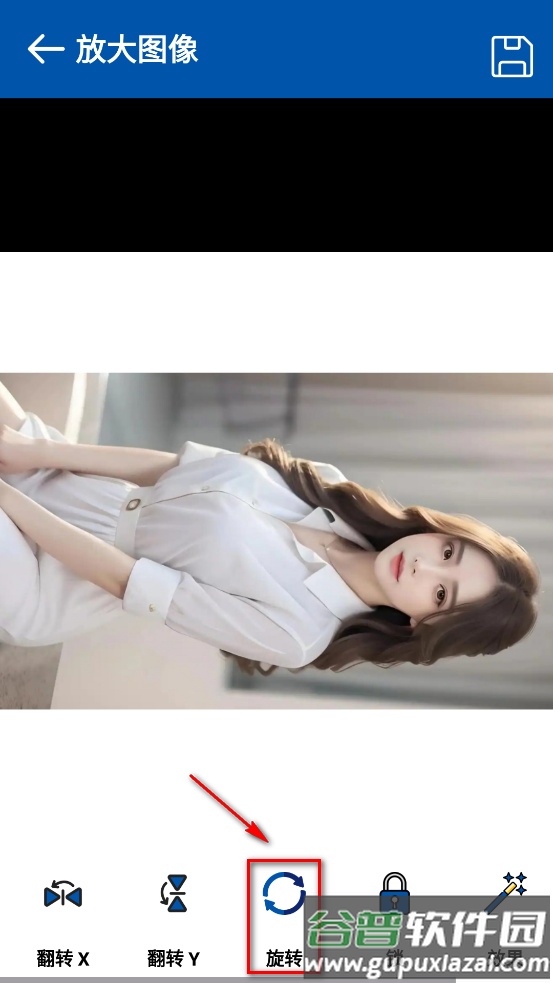 【旋转】功能每点击一次,图片便会顺时针旋转90度。
