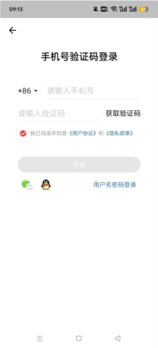 1、首次使用需通过手机号与验证码登录,并支持绑定微信或QQ账号。